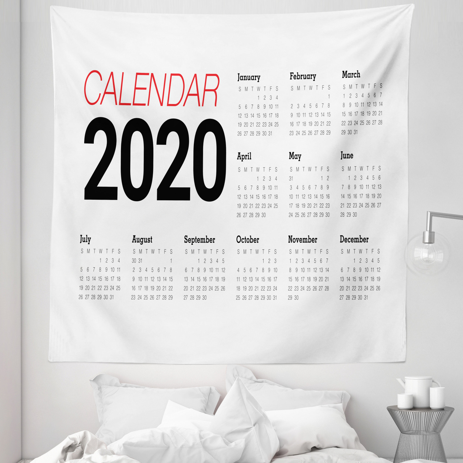 Calendar 2020 Tapestry Modern Design Date Plan Moths Weeks And Days Year Illustration Fabric Wall Hanging Decor For Bedroom Living Room Dorm 5 Sizes Dark Coral Black White By Ambesonne Walmart Com